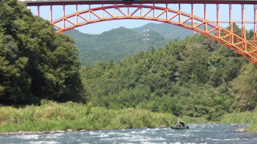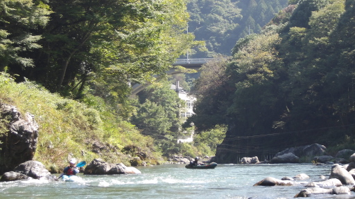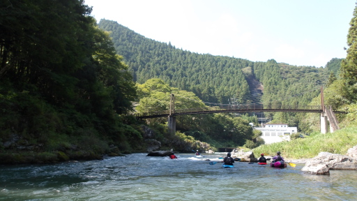 杣の小橋まで行くと、パックラフトを準備中の方がお一人。水面では部活風なリジッドのチームが練習中。