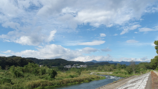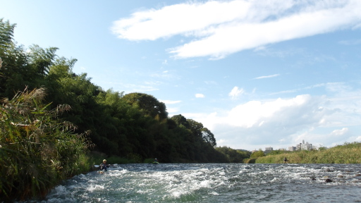 水温、水質(澄んで来てる感じ)、蝉(ほとんど鳴かないし、たまにツクツクボウシが鳴く)、空の高い感じに雲の形、樹木の感じ、川原のススキの穂、そして太陽の角度。