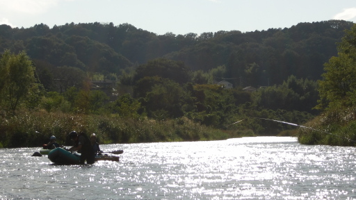 今シーズン20回目の川下りは、ベリーショート会のお2人と自作艇のTさんの計4艇で多摩川を発電所から河辺まで下ります。