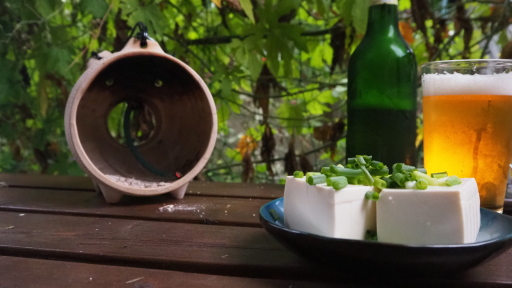 通り過ぎざまに「寒いでしょ?」と訊いたらなにか奇声を発していました。