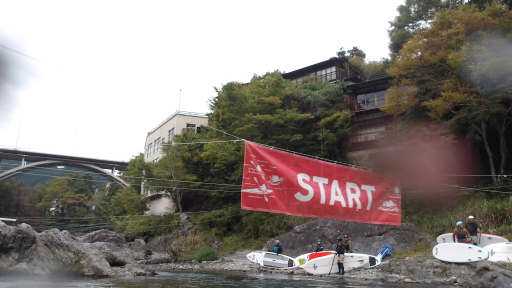 しかし、FINISHの横断幕を過ぎて気が緩んだのでしょうか。上流を振り返ってカメラを構えていると、岩に当たってあっさり沈。