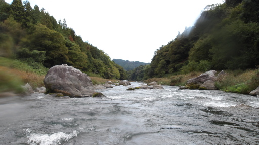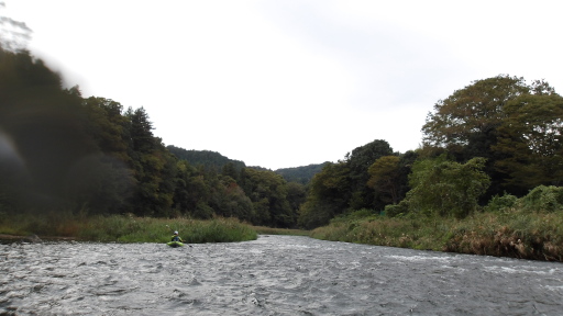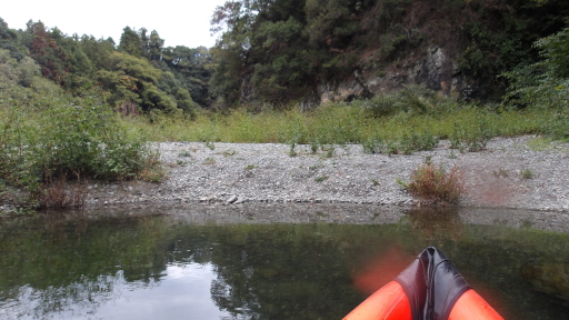 ああ、これで晴れてたら川底まで日が差し込んで、カヌーの影が川底に映って、宙に浮いてるように見えるだろうなあと残念に思っていたら、OさんもKさんも水が澄んでいてキレイと感心しきり。