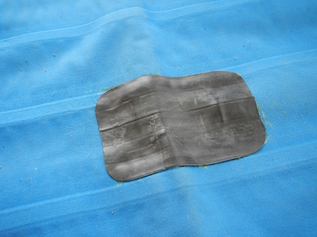 ↑ 修理の材料は、古くなった自転車のタイヤチューブです。