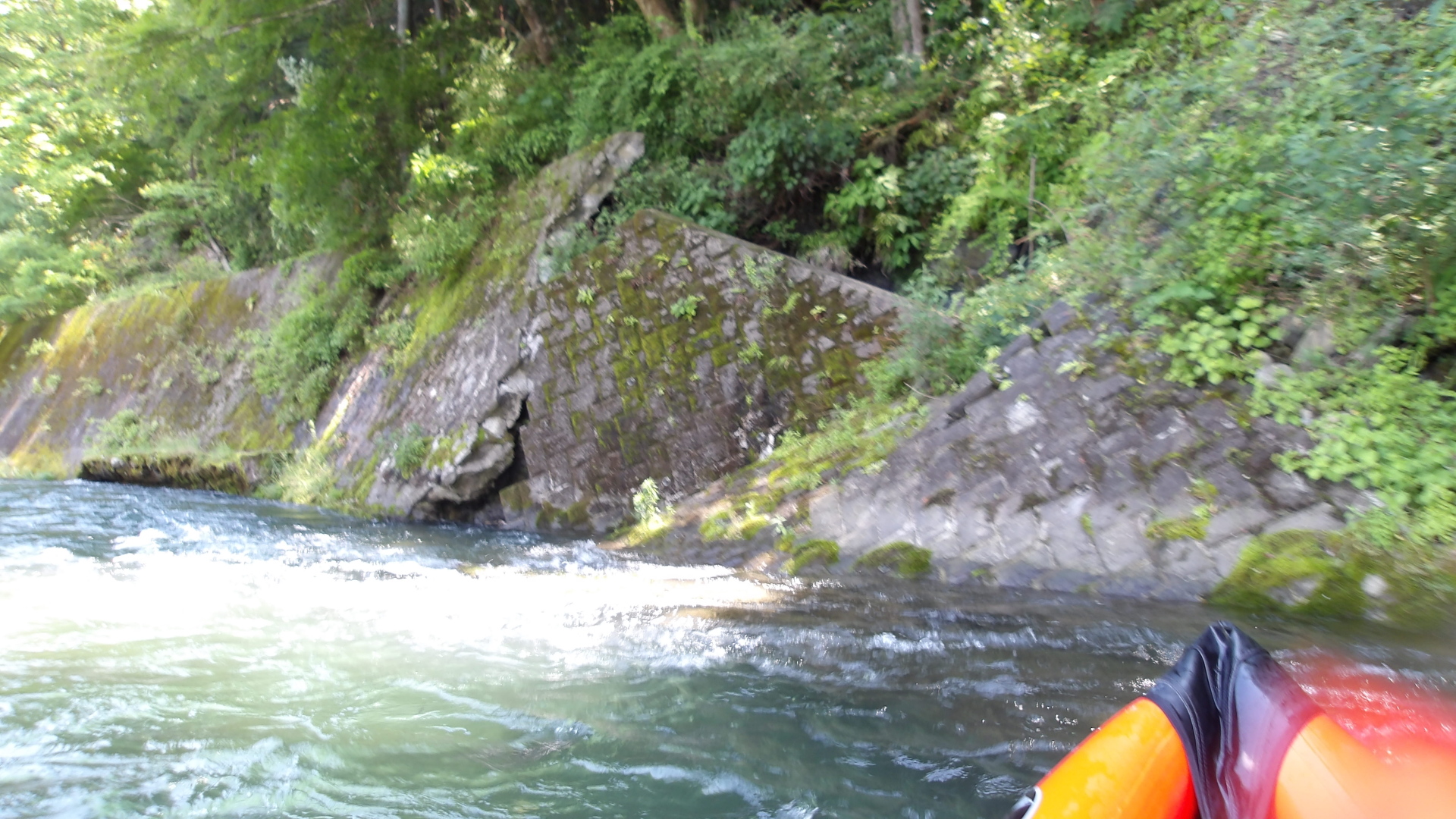 杣の小橋左岸ではラフト3艇が準備中。こちらも邪魔にならないように隅っこで準備。ガイドさんによる諸注意やお客のウケの取り方など耳ダンボで聞いてました。安全確保だけでなくジャングルクルーズの船長的スキルが要るんですね。ガイドさん海外の方でしたけど日本語上手すぎ!