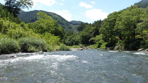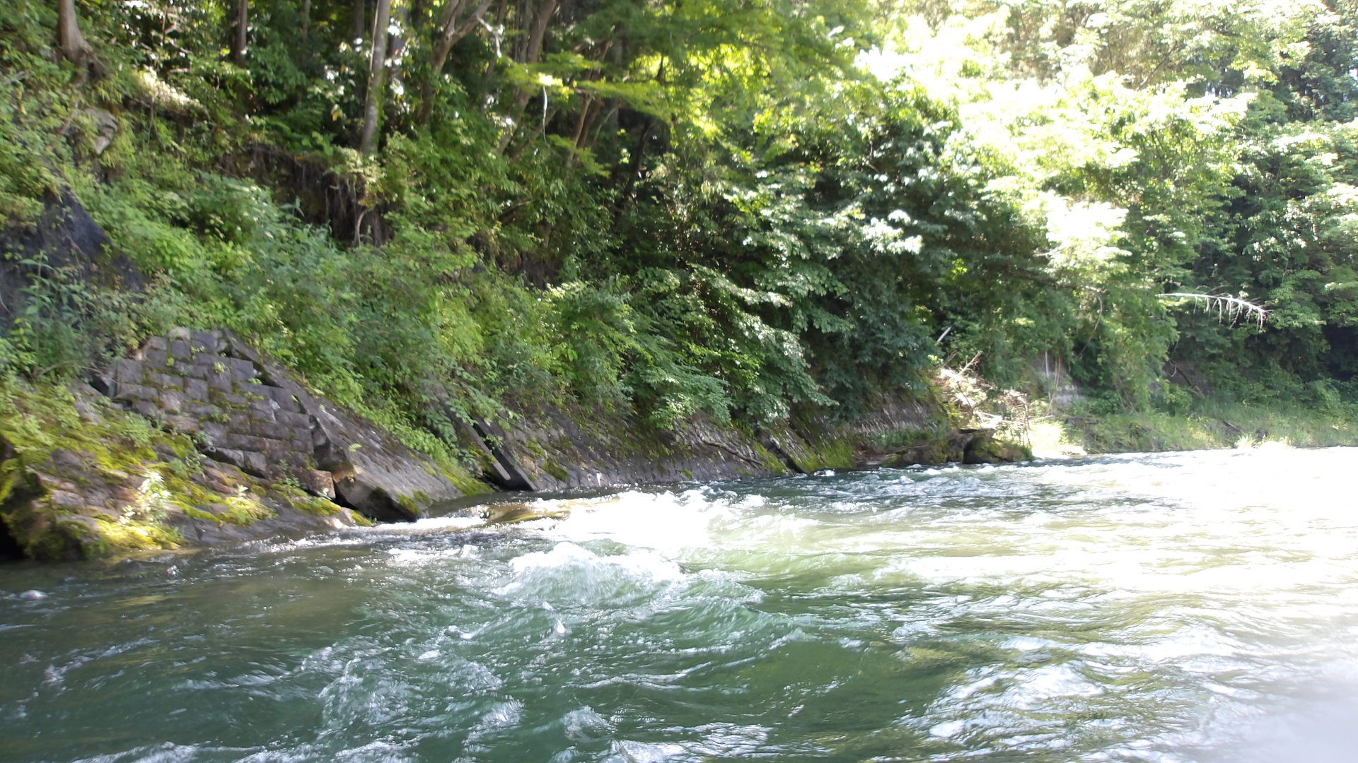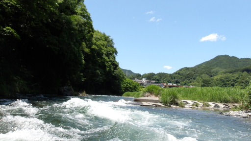 気温もそれなりに高く、天気は文句なし。微かに新緑感の残る木々の葉っぱと、もうすっかり夏の葉になって、きらきらと太陽の光を反射している木があって実にいい感じ。そして、ホワイトウォーターの波頭の白いところが眩しくて嬉しい。