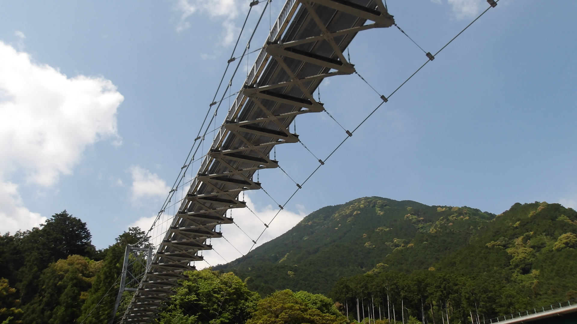 魚飛渓つり橋(5/14)。この床は苦手なタイプ。スマホ落としたらヤバイ。あと犬もたぶんこれ苦手。